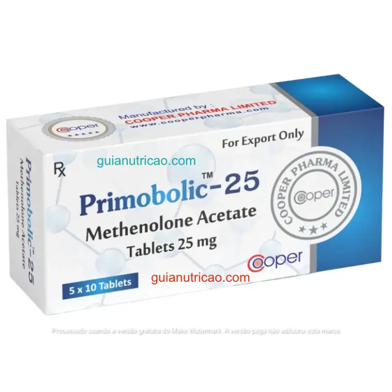 Comprimidos de 25 mg e apresentação em 5 blisters de 10 unidades (50 comprimidos), o Primobolic-25 oferece um formato prático, estável e conveniente para quem prefere ciclos orais ou deseja combinar a substância com outros anabolizantes em fases de cutting. Fabricado pela Cooper Pharma Limited, laboratório reconhecido mundialmente, este produto se destaca pela qualidade, consistência e padrão farmacêutico.